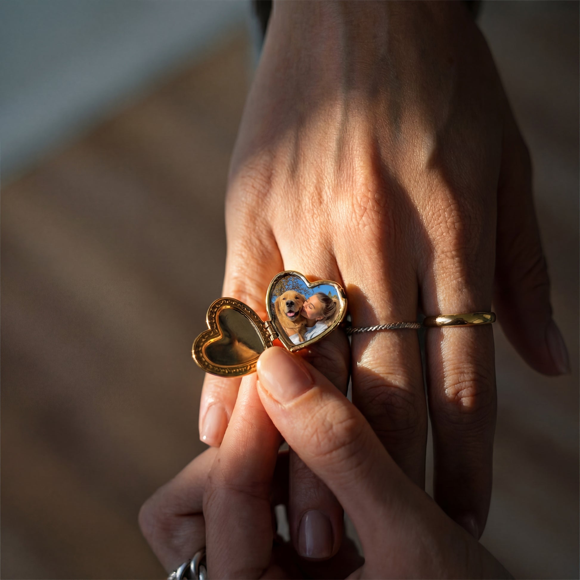 The heart-shaped medallion gives the ring an emotional yet timeless effect. Whether partner, child, pet, or a very special moment: